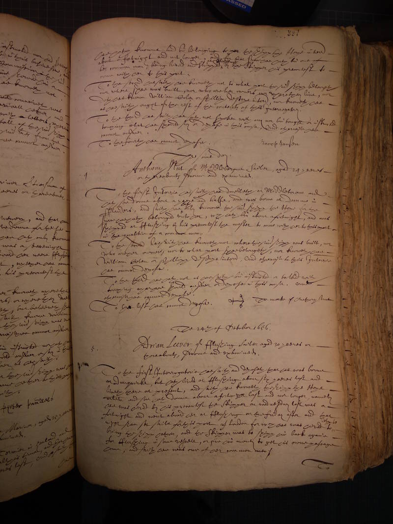 | − | '''Adrian Leever''' of fflushing | + | '''Adrian Leever''' of fflushing Sailer aged 30 yeares or |