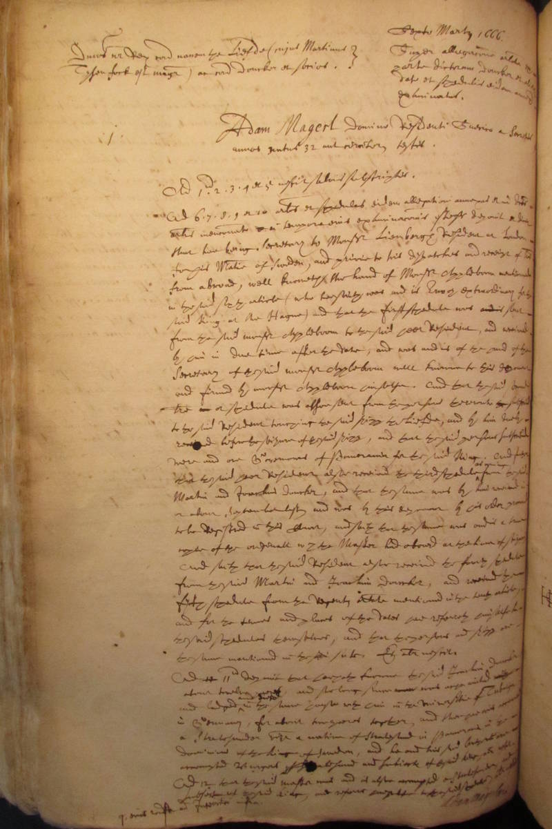 Adam Magerl Dominus Residenti Suecico a [?Secretis]
