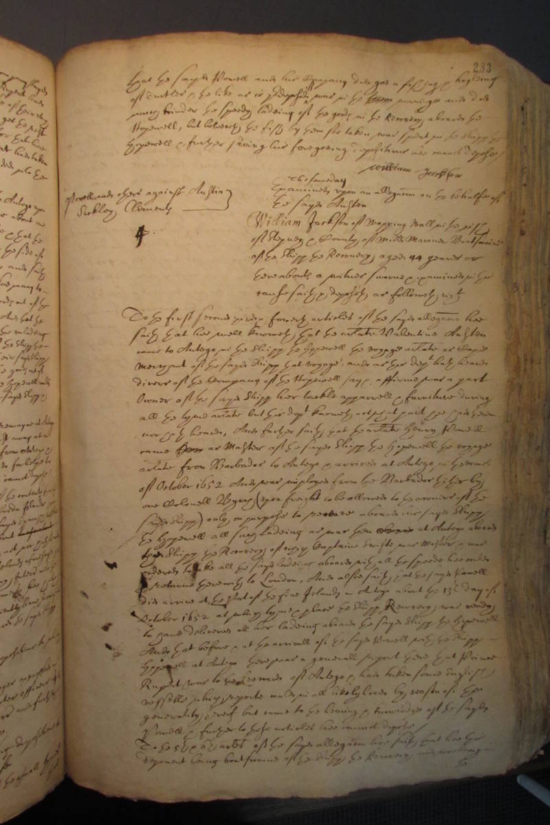 of October 1652 And was imployed from the Barbados thither by
