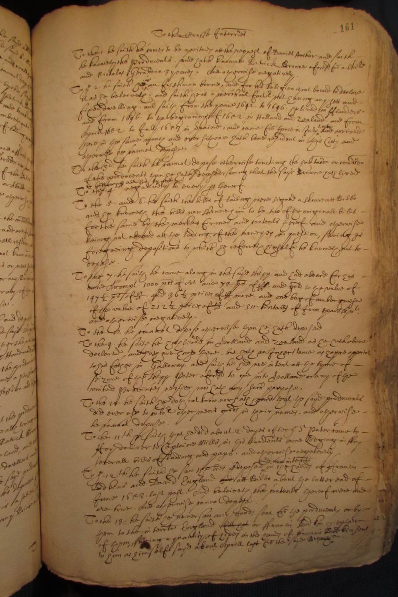 | + | To the 13. he saith he never saw any goods sent from the producents or by | ||