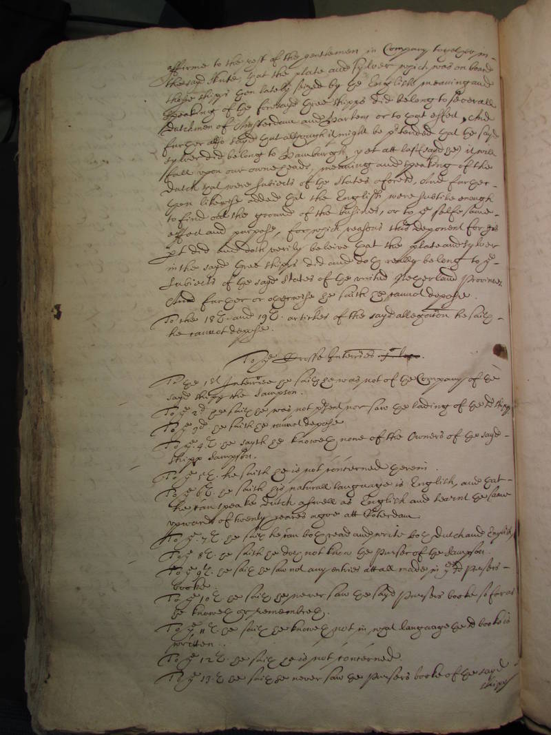 To the 10th he saith he never saw the sayd Pursers booke so far as