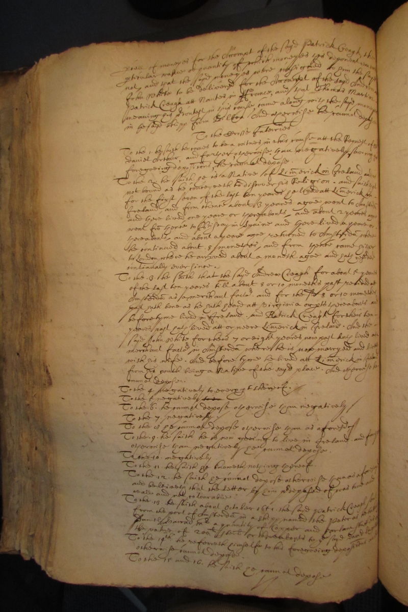 To the .2. he saith he is a Native of Limerick in Ireland and