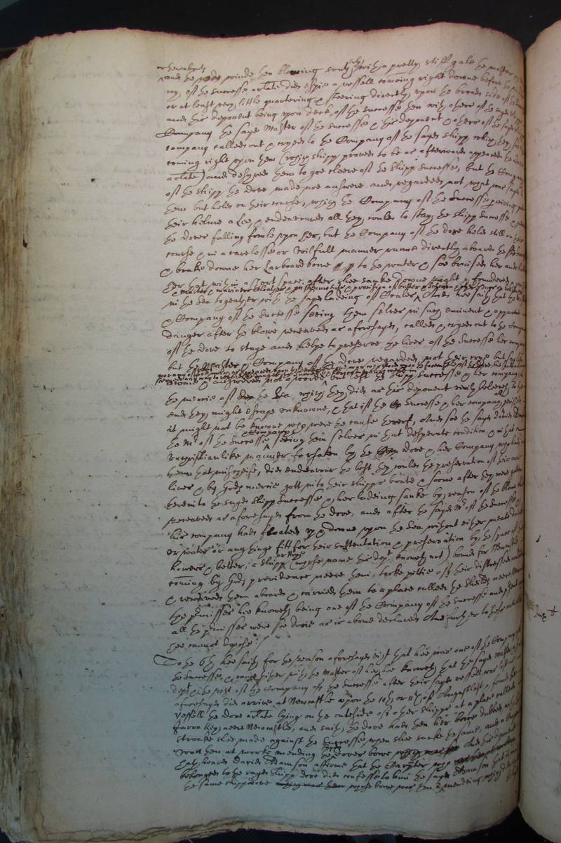 awaie and answered not a worde nor any of [?them] soe much as appeared upon the decke but one man who stood uponthe forecastle of the dove, but spake not nor seemed any way to regard the danger to the Successe and Company were in but left the shipp Successe and her company to