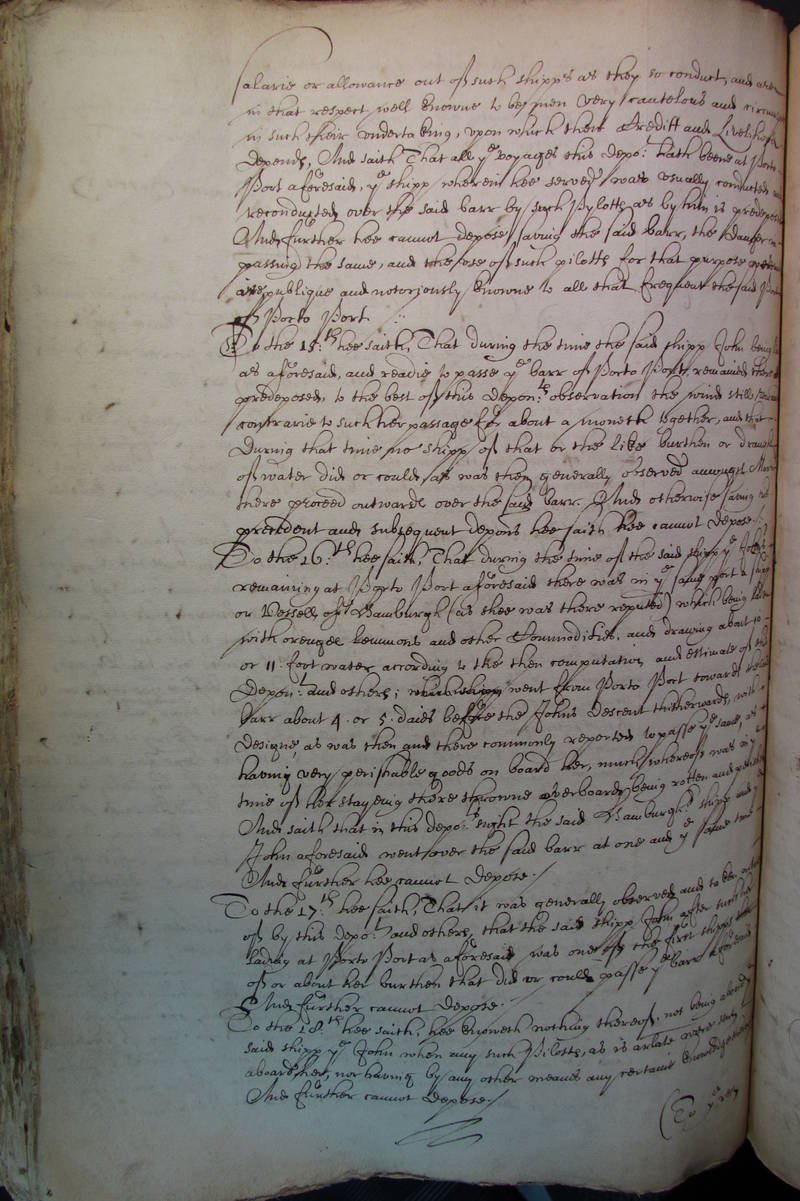 depends, And saith That all the voyages this deponent hath beene at Porto