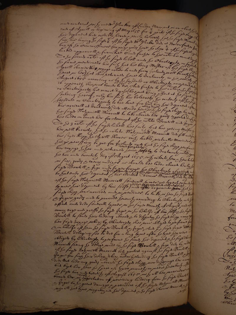 to that end this deponent and his Contest Thomas Marriott in the sayd moneth of August and soone after the arivall of the sayd shipp