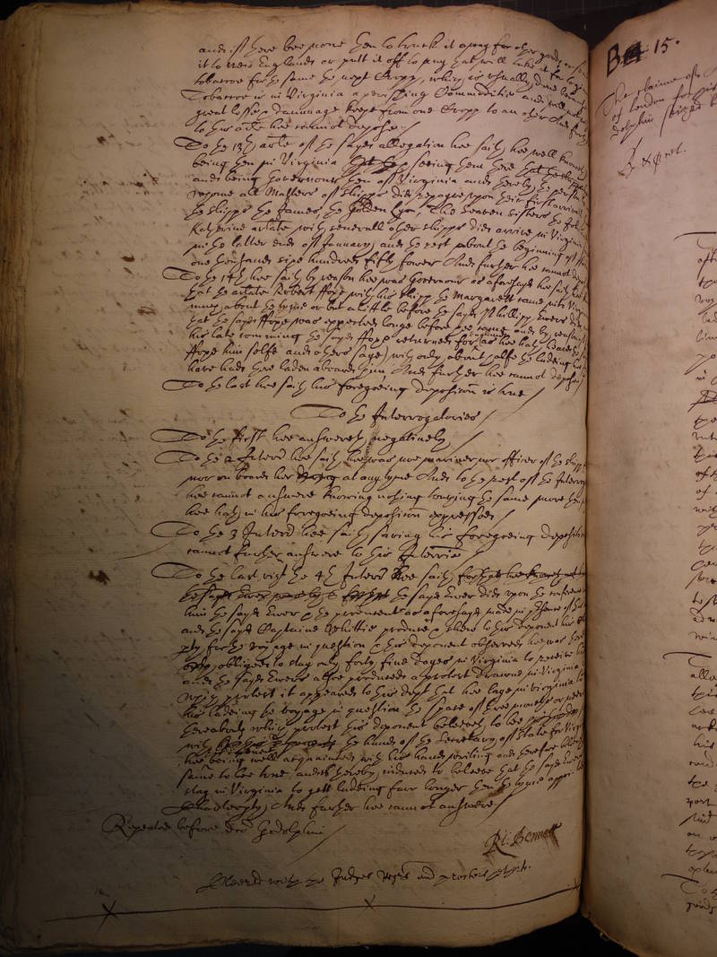 which protest it appeared to this deponent that hee laye in Virginia to [?receave]