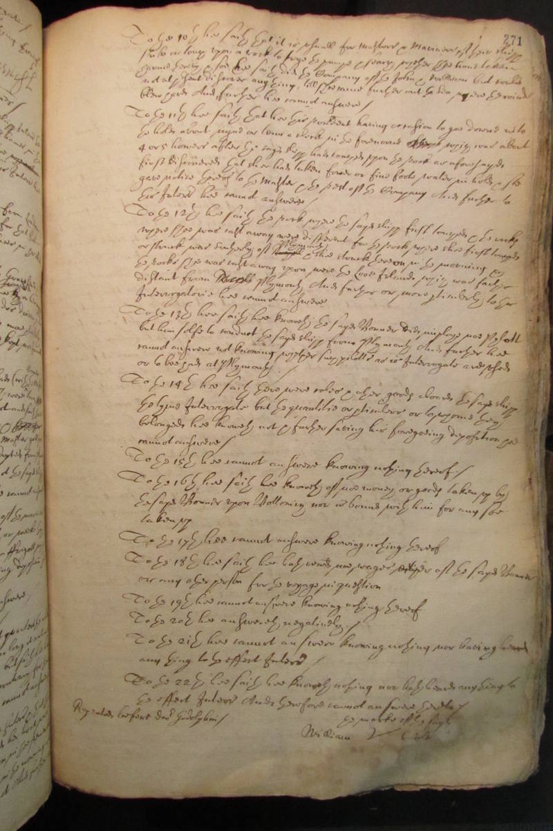 To the 11th hee saith that hee this rendent having occasion to goe downe into