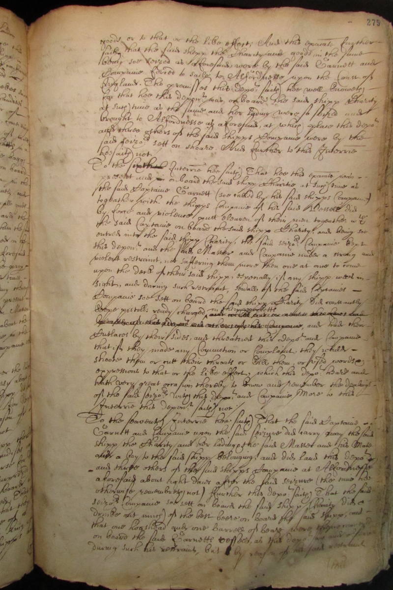 on board the said Garnetts vessell, as this deponent saw and observed