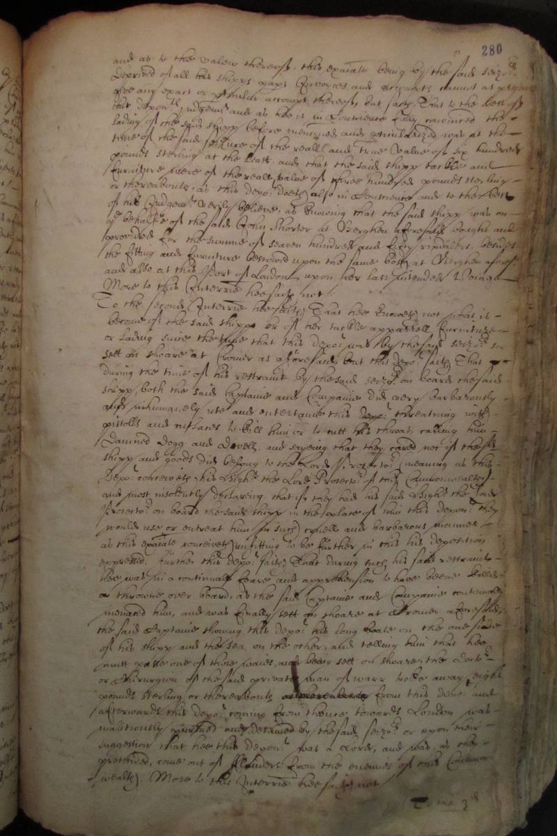 of his shipp and the sea on the other, and telling him that hee