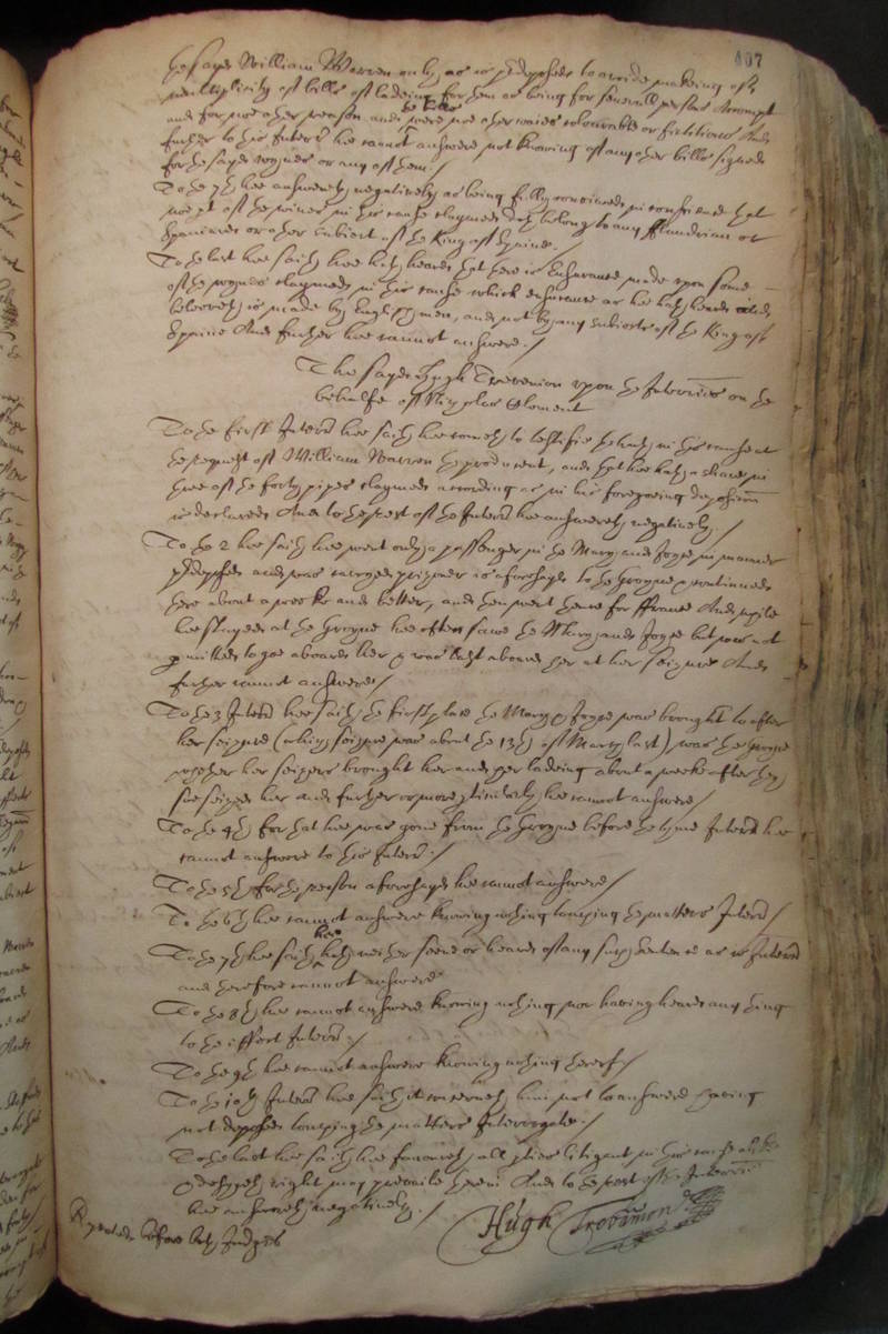 The sayd hugh Trevenion upon the Interrogatories on the