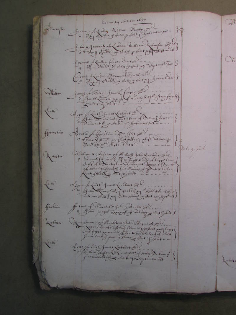 This Port Book covers coastal traffic to and from the Port of London betwwen September 1657 and June 1658