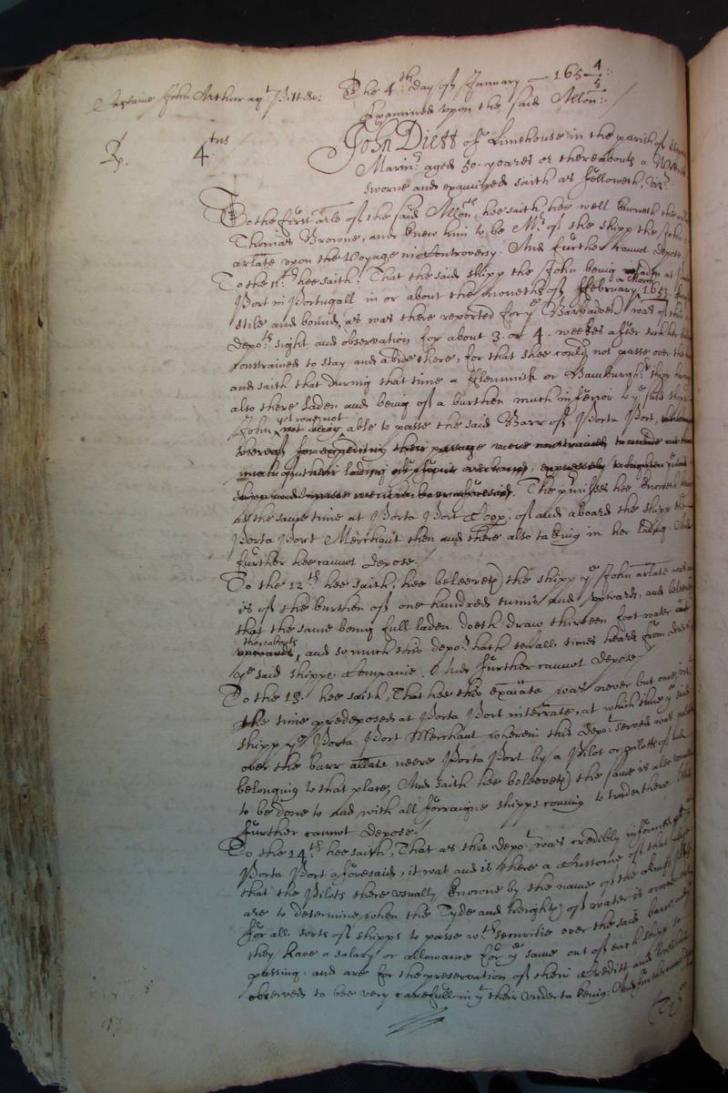 Port in Portugall in or about the moneths of ffebruary or March 1653. English