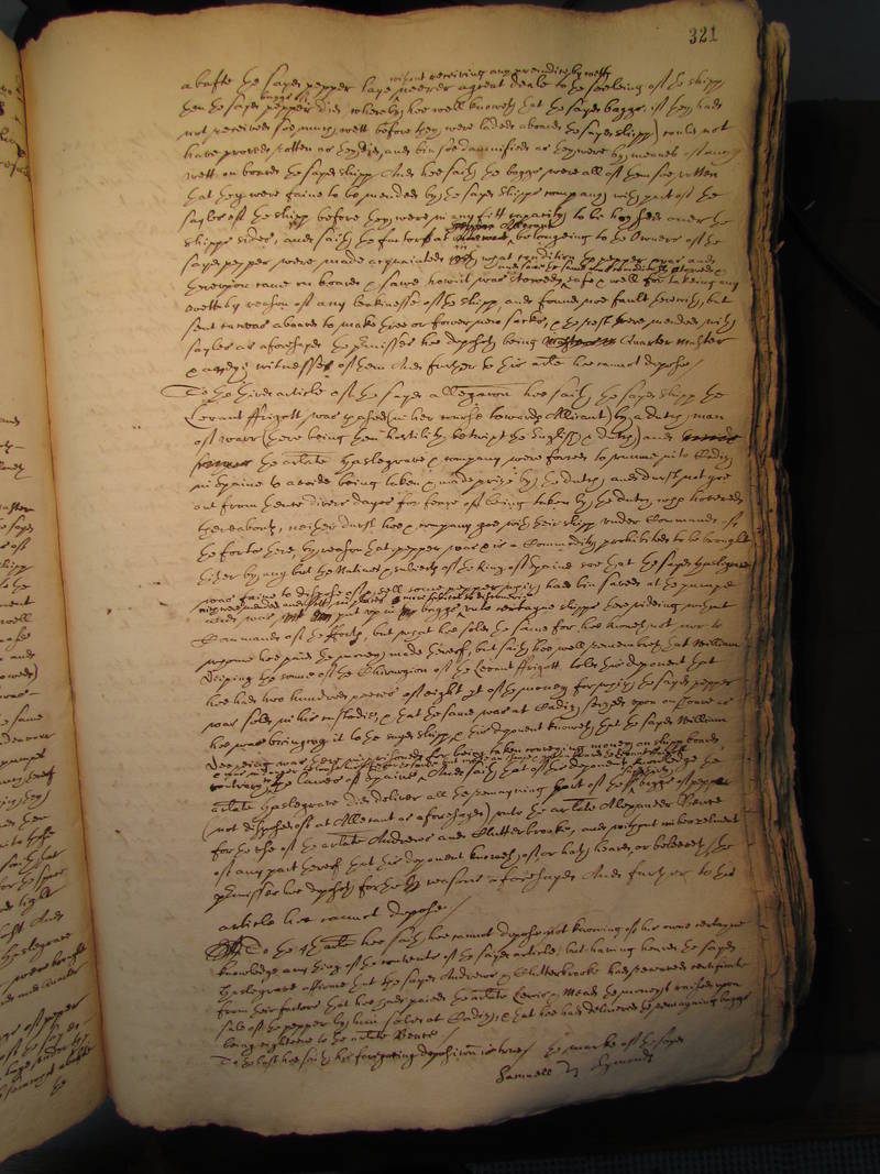 abafte the sayd pepper laye without eceiving any preiudice by wett neerer a great deale to the seeleing of the shipp