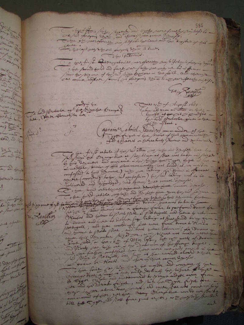 The Lord Protector against goods in the shipp the Orange}