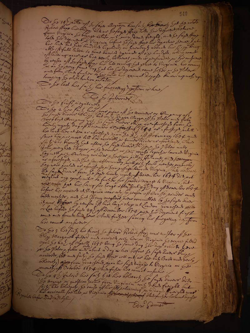 his arrivall soe late in Virginia And further hee cannot depose