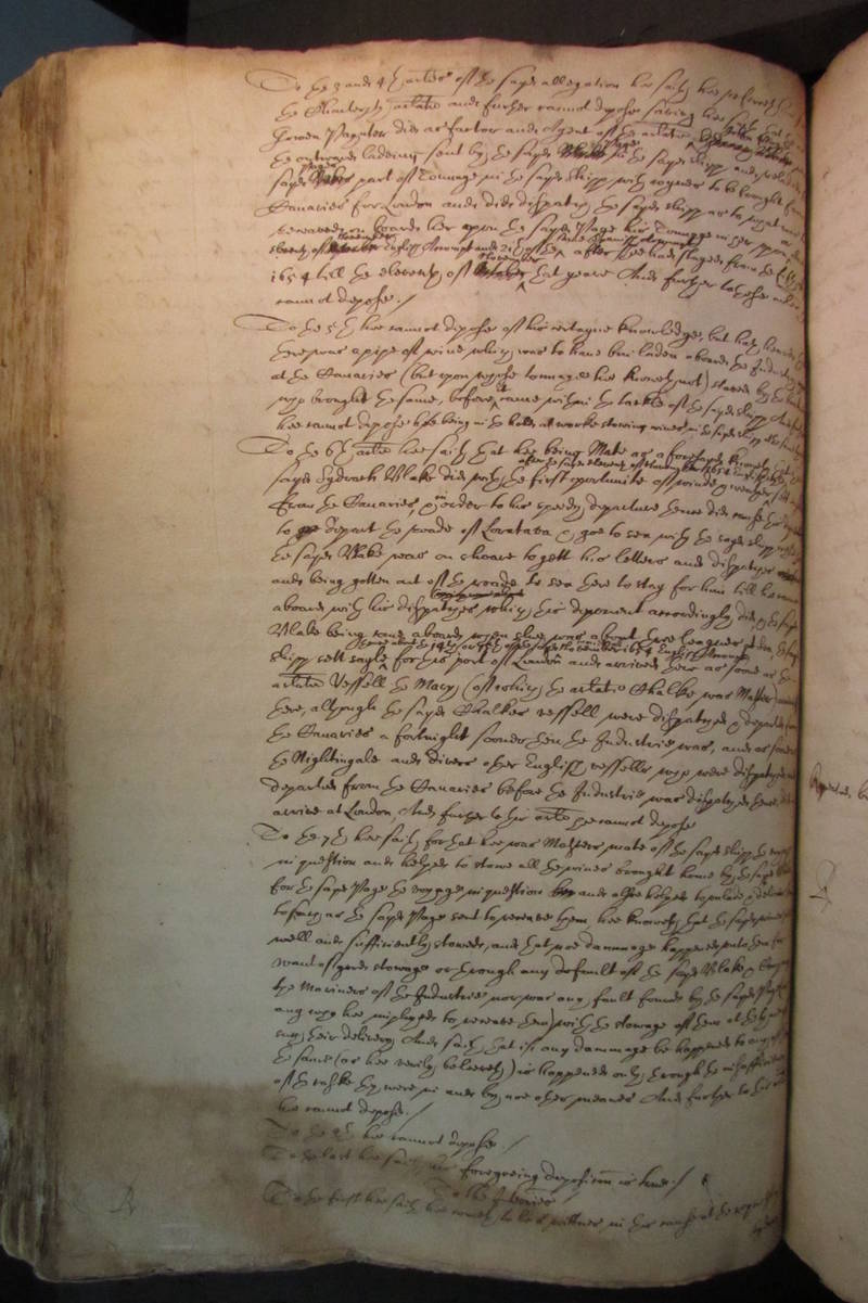at the Canaries (but upon whose tonnage hee knoweth not) staved by the boat[?men GUTTER]
