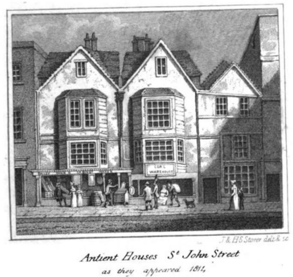 Storer, J & HS, 'Antient houses St. John Street as they appeared 1811' in Thomas Cromwell, History and description of the parish of Clerkenwell (London, 1828), opp. p. 112