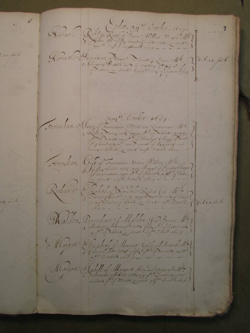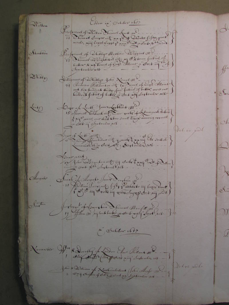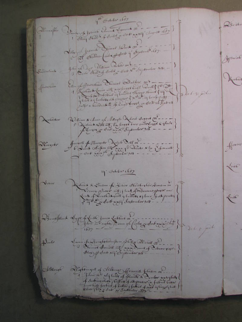 This Port Book covers coastal traffic to and from the Port of London betwwen September 1657 and June 1658